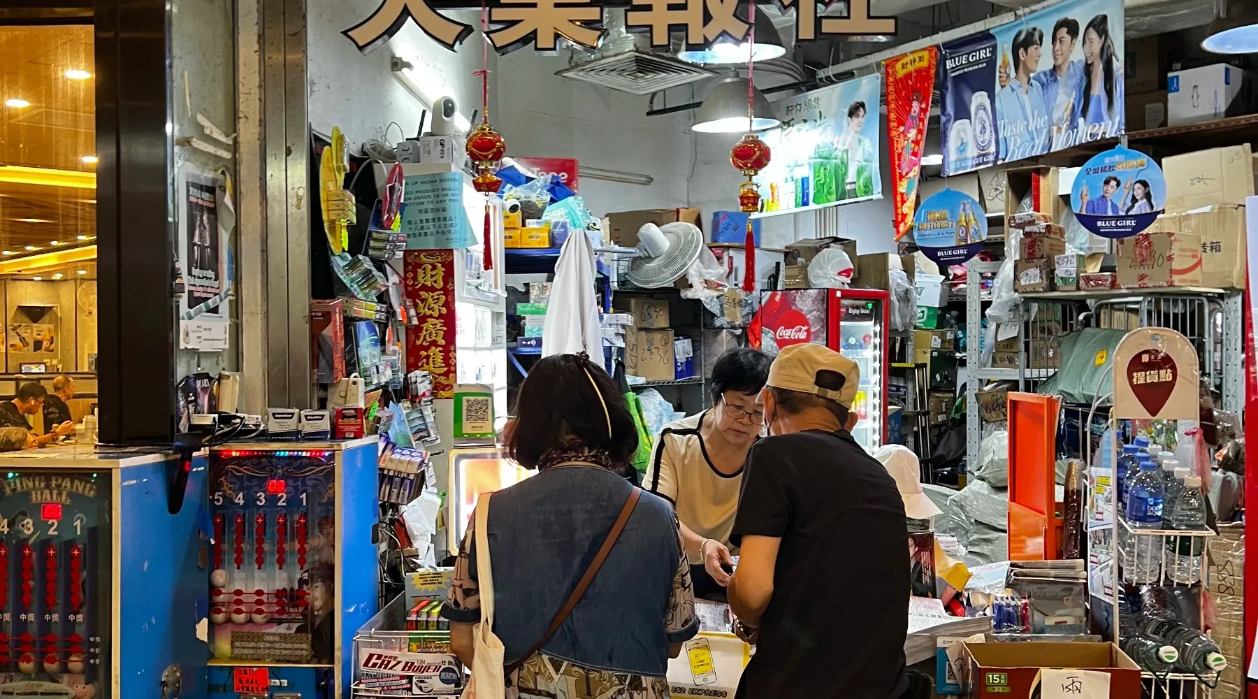 大業報社不只是報攤,更是你的便利小站。口渴有可樂、雪碧,需要小物有打火機、圓珠筆,隨時滿足你的生活需求。